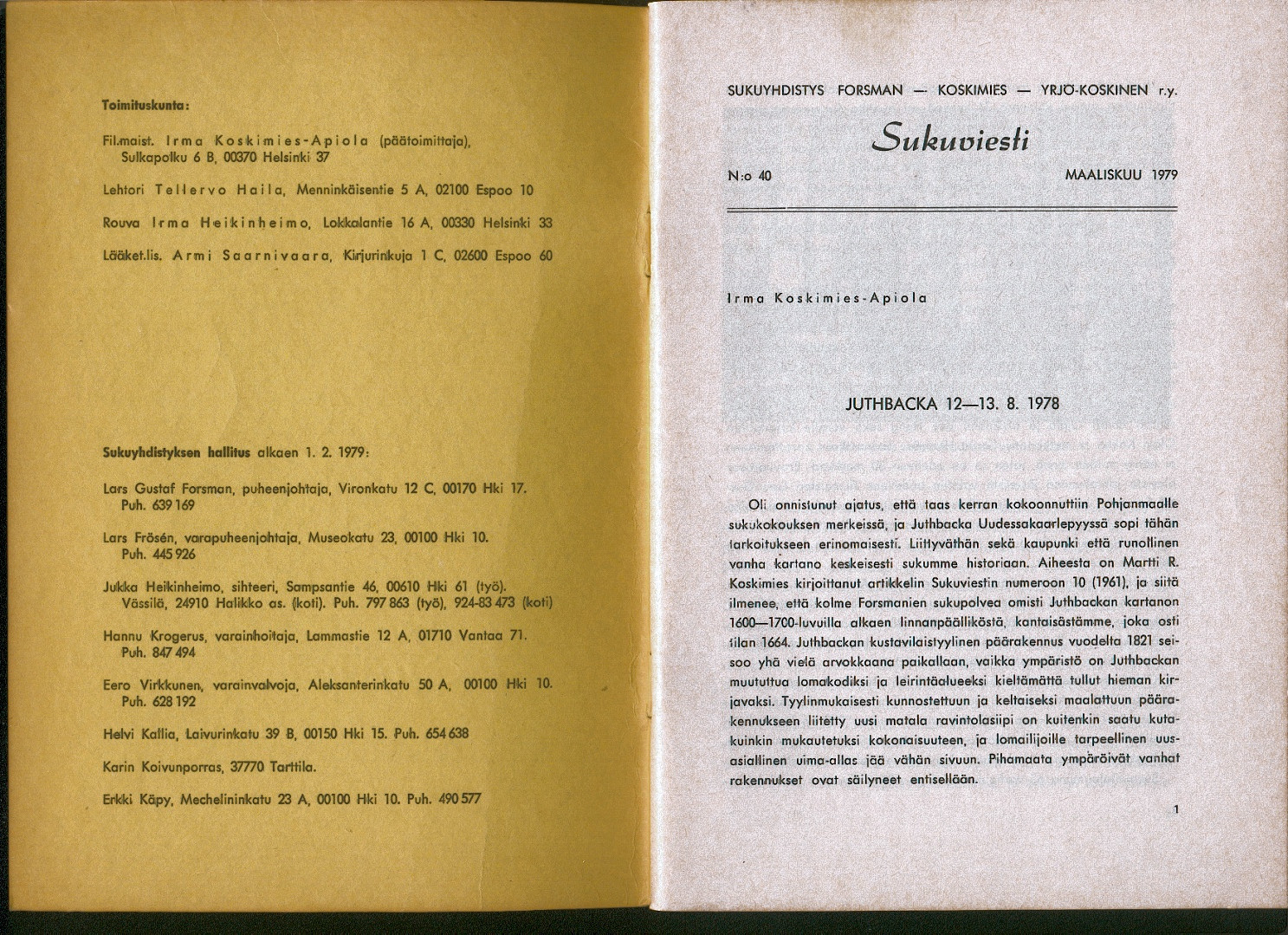 Sukuviesti 40, sivut 0 ja 1