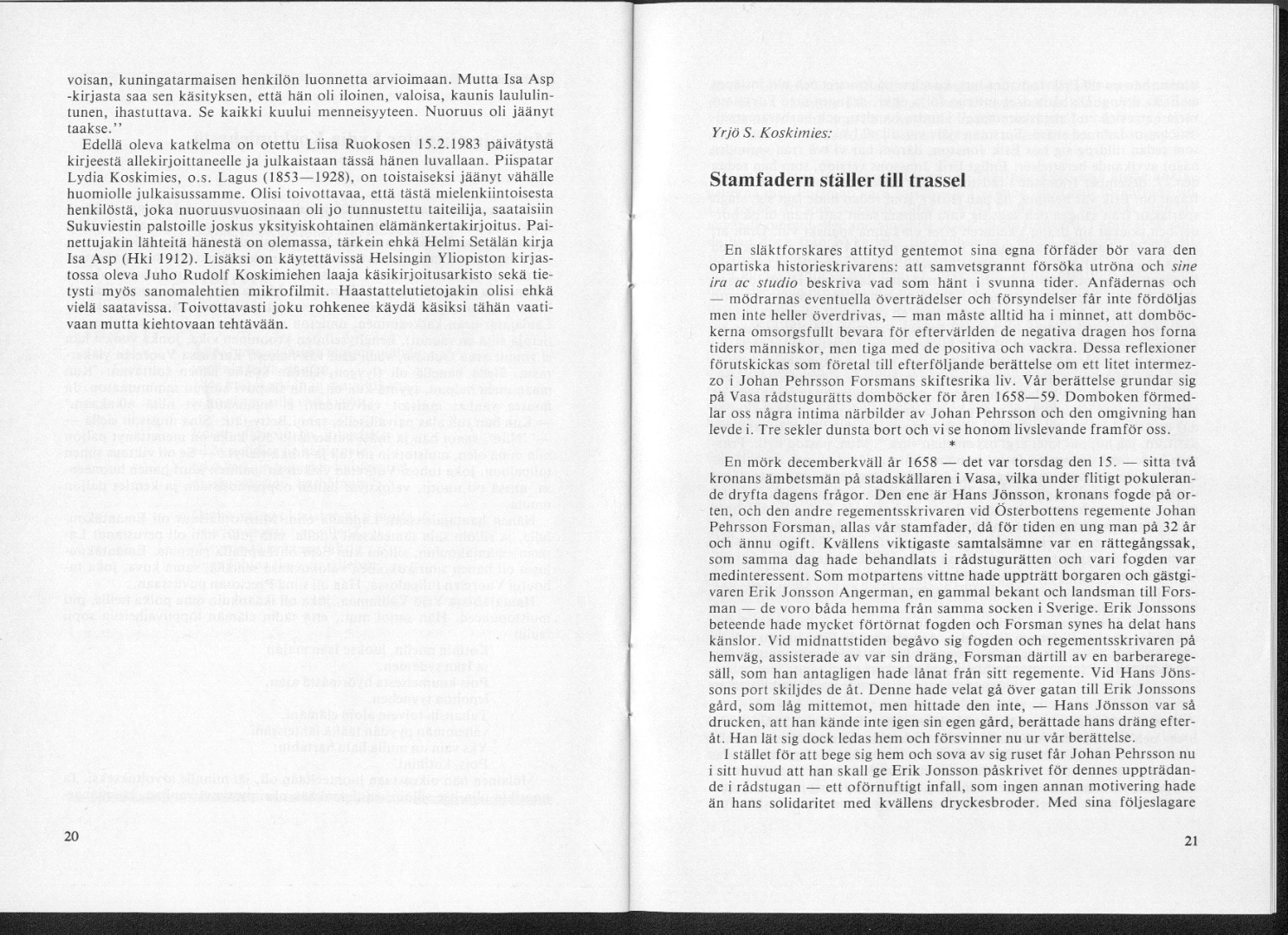 Sukuviesti 46, sivut 20 ja 21