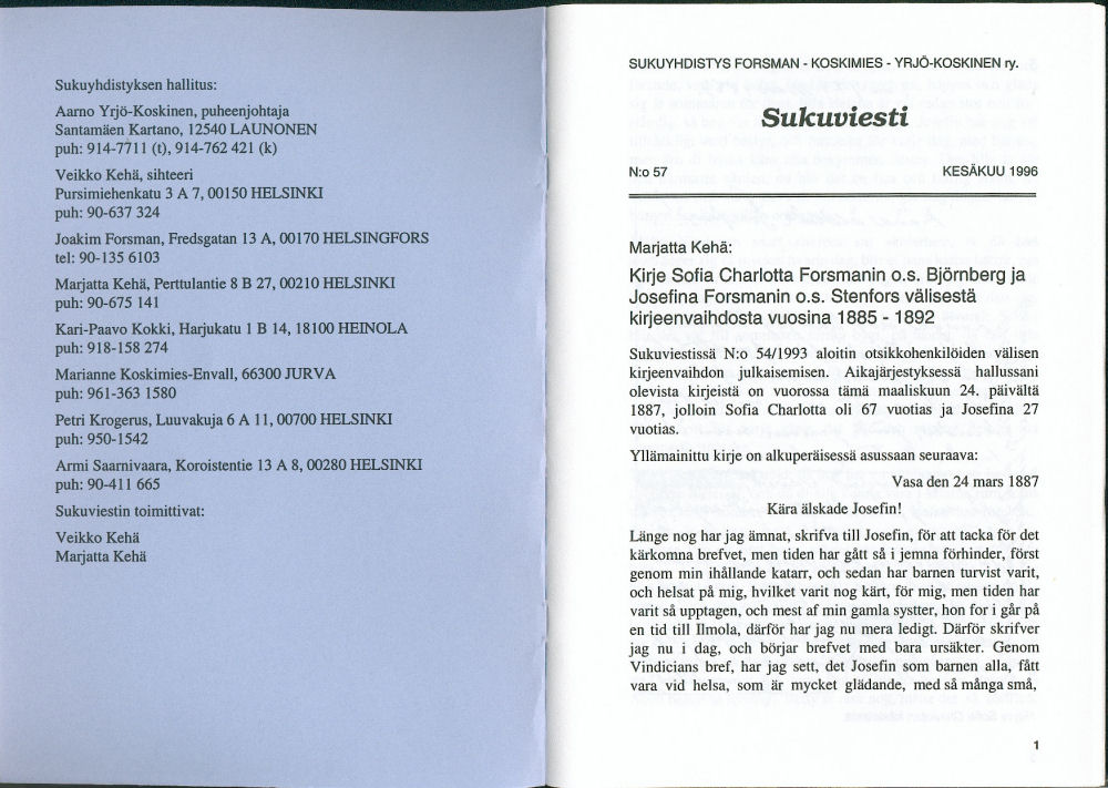 Sukuviesti 57, sivut 0 ja 1