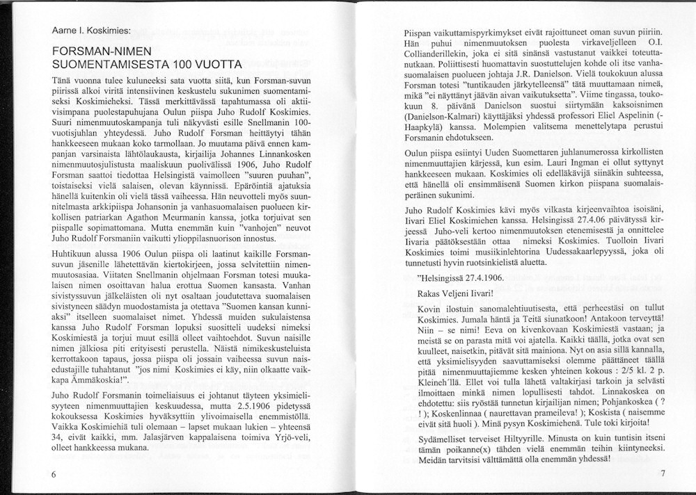 Sukuviesti 67, sivut 6 ja 7