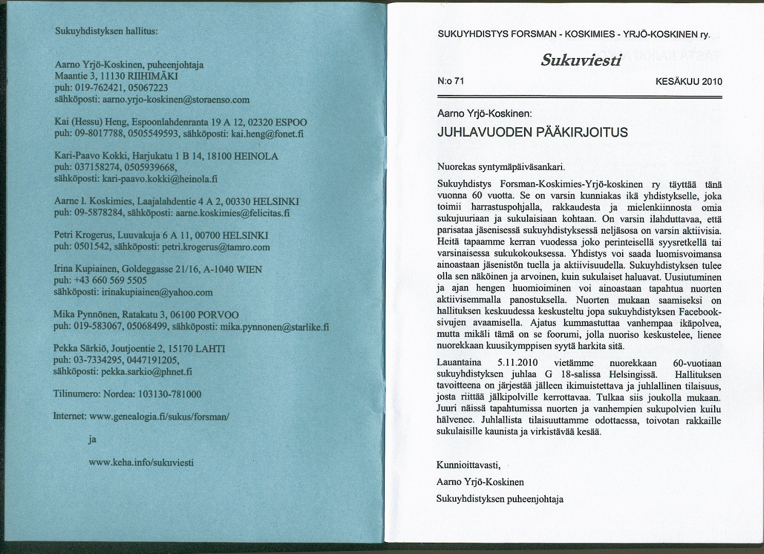 Sukuviesti 71, sivut 0 ja 1