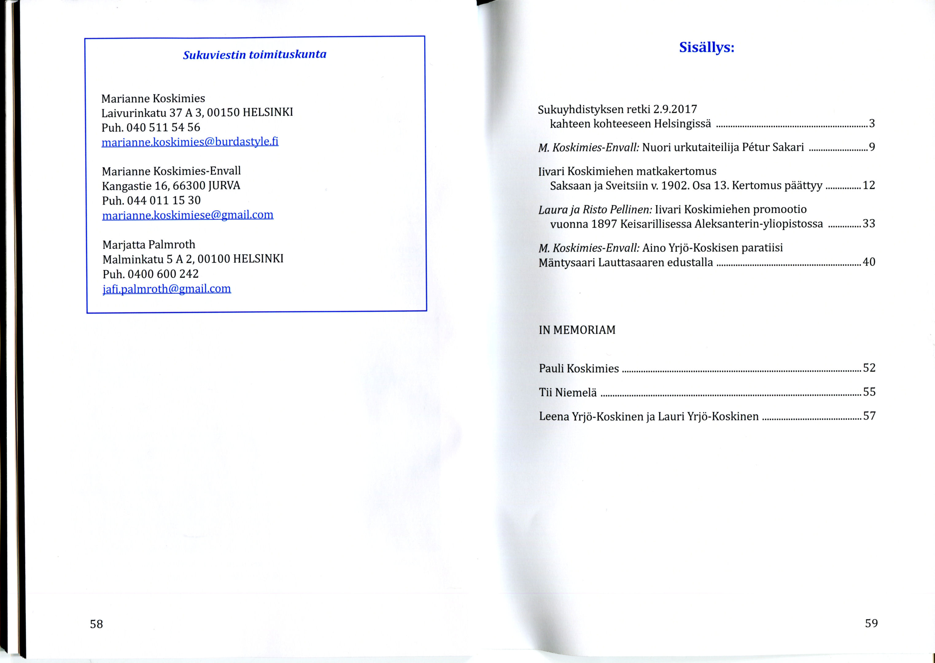 Sukuviesti 79, sivut 58 ja 59
