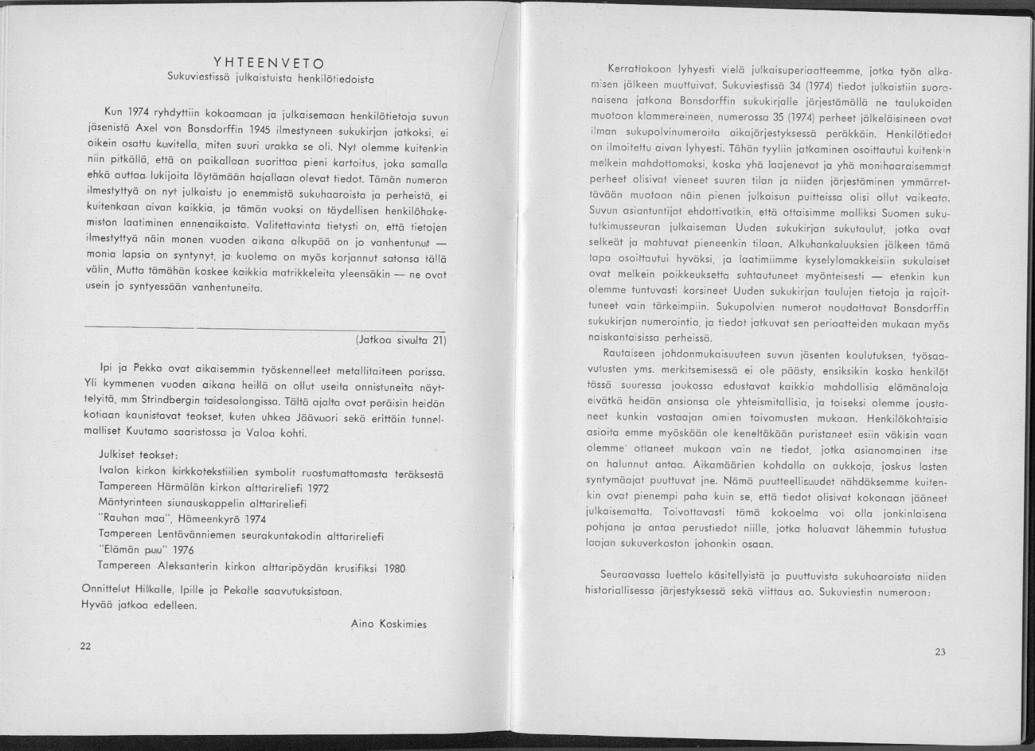 Sukuviesti 42, sivut 22 ja 23