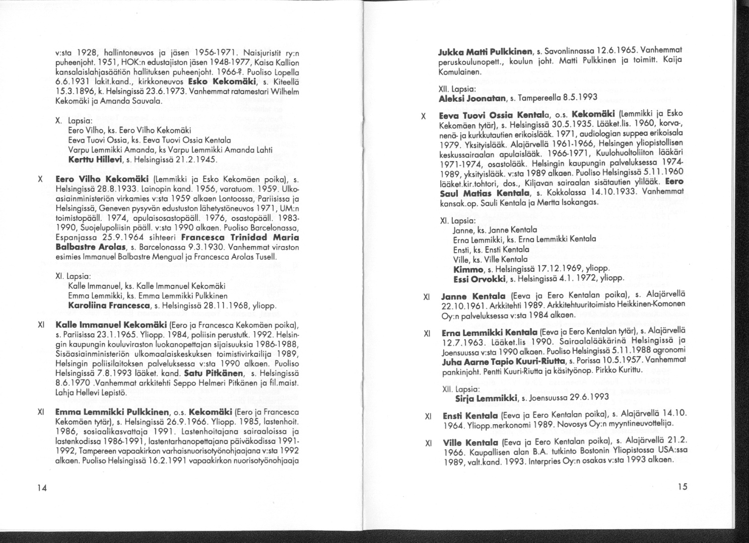 Sukuviesti 55a, sivut 14 ja 15