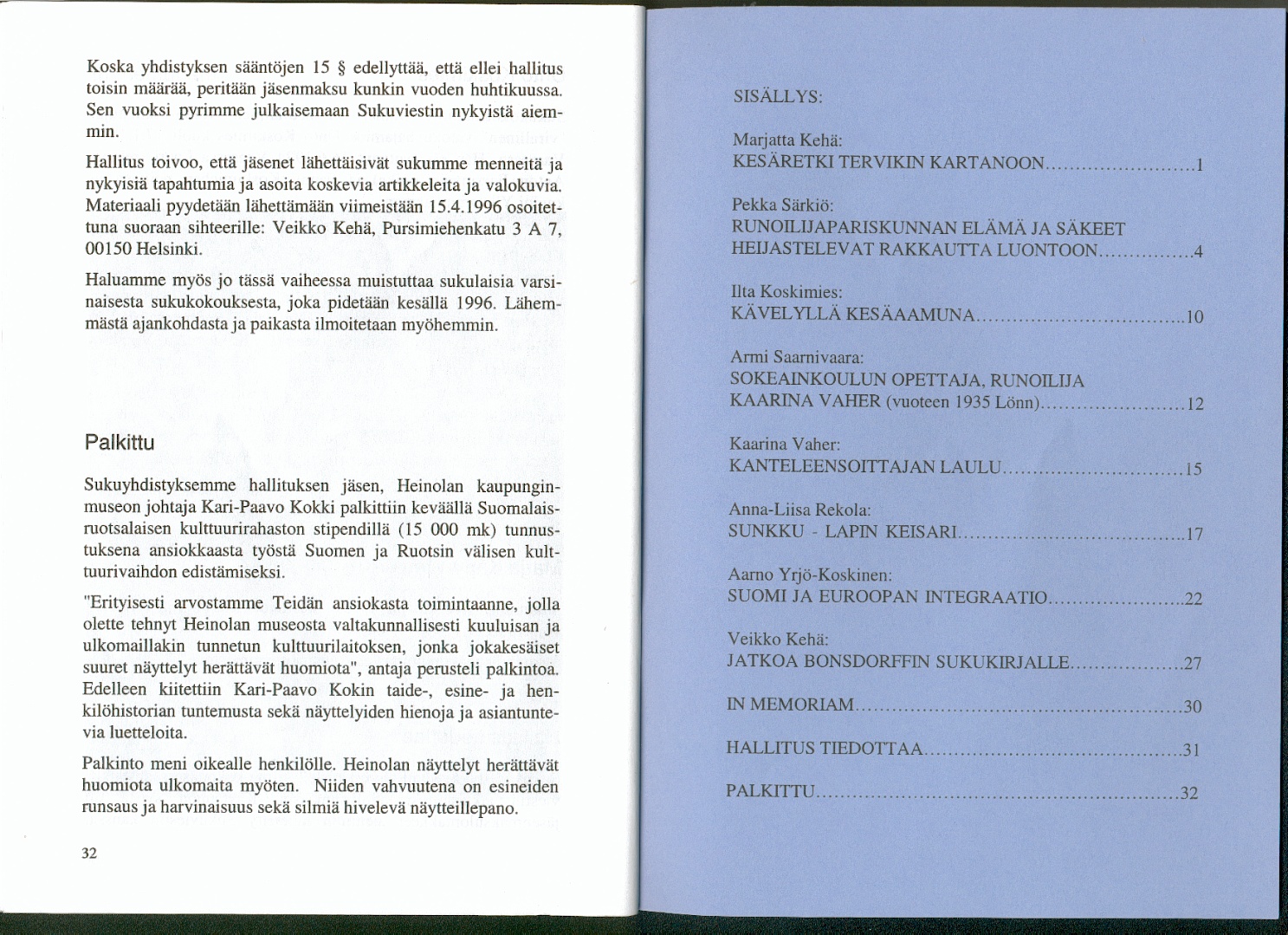 Sukuviesti 56, sivut 32 ja 33